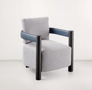 • Стильное кресло в обивке из ткани или кожи и ножками из ясеня
