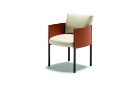 • Стул с подлокотниками на деревянном основании и с обивкой из ткани или кожи