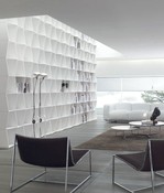 - Система библиотек из акрилового камня с полками в виде волнообразного потока.