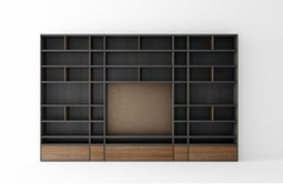 - Библиотека с задними панелями, раздвижными дверцами и ящиками