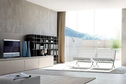 Основу в них составляют разнообразные диваны в сочетании с креслами, пуфами, шкафами и столиками. Композиции для гостиной часто содержат тумбы, полки, светильники и зеркала.
