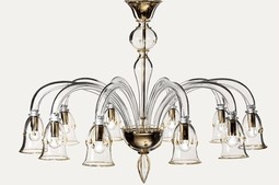 - Люстра подвесная с 12 плафонами в виде подсвечников, на позолоченном каркасе.