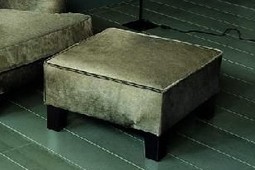 • Квадратный пуф-столик с кожаной или текстильной обивкой.