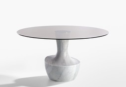 - Круглый столик со столешницей из ламинированного керамогранита или светло-серого натурального камня