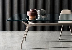 • Стильный стол на двойном основании со столешницей из стекла или керамики