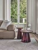• Журнальный столик с круглой или овальной столешницей из стекла